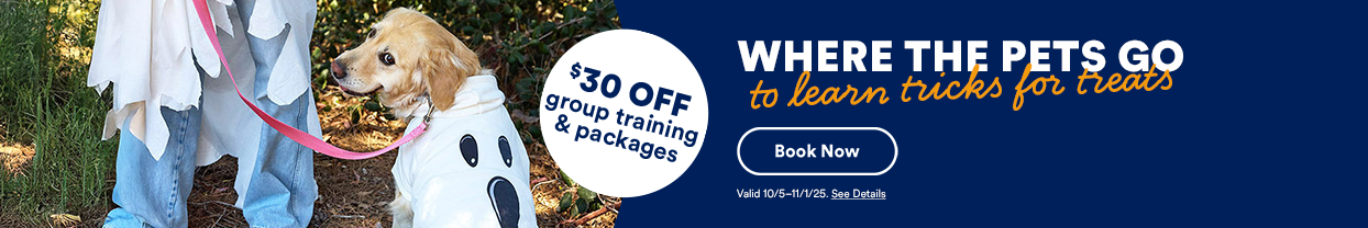 Timing and consistency are essential to successful puppy training. Petco's puppy training services introduce the basics and build on the commands you practice at home with your pup. The puppy training classes cover essential commands, loose-leash walking, problem-solving ideas for potty training puppy, chewing, digging and more. At our in-person puppy group training sessions, our expert dog trainers also leave plenty of time for puppy socialization and playtime.