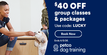 Welcoming home a dog is an exciting time filled with new challenges. Petco is with you every step of the way as your bond with your dog and learn to speak their language. At Petco, we believe that dog training takes positivity and mentors. We offer positive dog training services that encourage good behavior through fun and informative group or private lessons led by expert dog trainers. Our online and in-person dog obedience classes offer a secure environment where dogs and puppies can learn the skills they need for real-world situations.